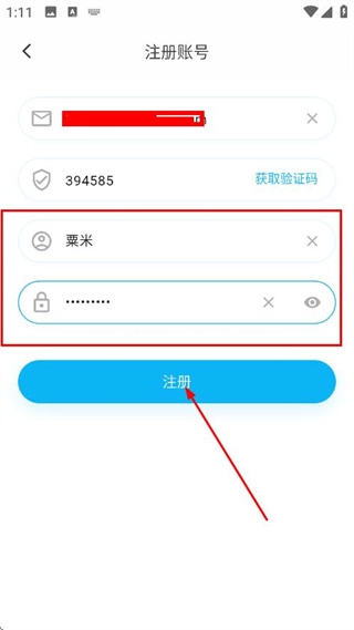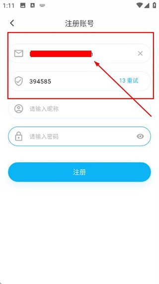4、进入账号注册页面后,依次填写昵称与密码,随后点击注册按钮,即可完成账号注册流程。