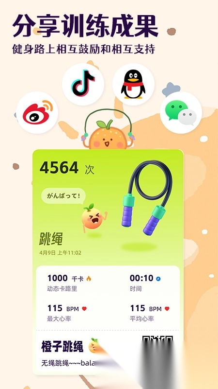 A3:橙子跳绳软件v1.04可兼容市面上的主流智能跳绳型号,像橙动系列、FitRope等均在支持范围内。