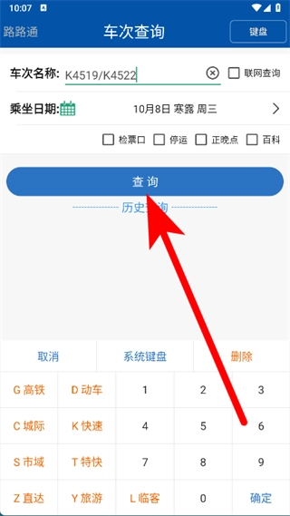 1、启动路路通应用,点击底部导航栏中的“车次”选项,进入车次查询界面。