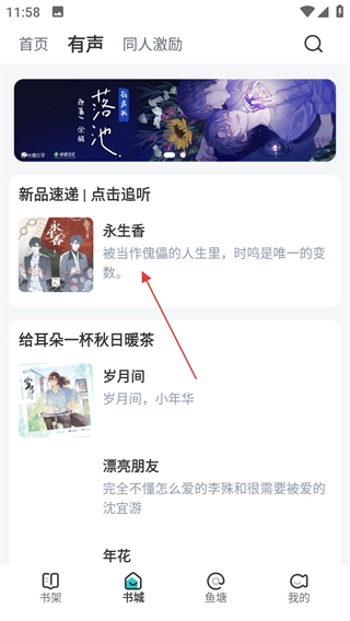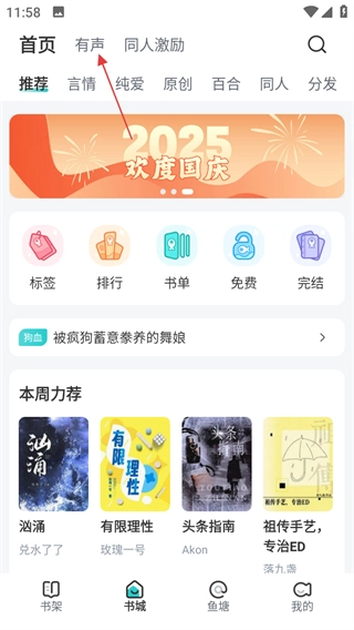 1、点击页面上方的有声,进入有声页面。