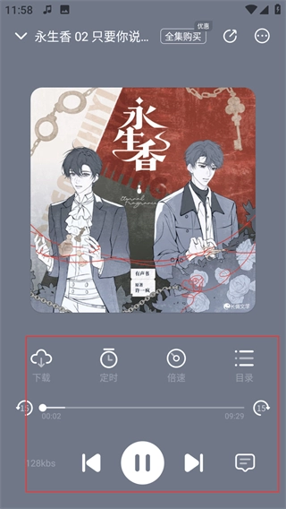 4、在有声书播放页面,可使用等功能进行听书。