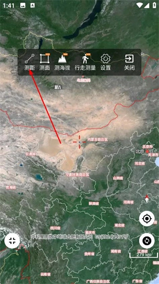 在测量功能选择界面,点击测距选项,即可进入测距绘制界面。