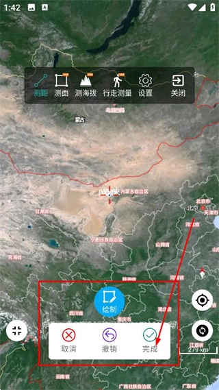 完成测距等操作后,就能查看与测量相关的地图区域展示了。