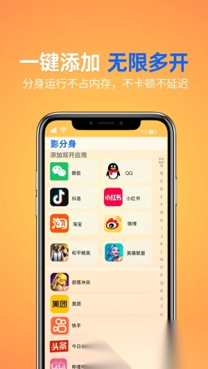 看到“影分身”三个字时,是不是瞬间对这款软件感到陌生?实际上,它是一款非常实用的应用分身工具。这款软件能够兼容市面上各类安卓机型,用户可以自由添加任意想要分身的应用,而且运行分身应用时不会占用额外内存。这样一款充满黑科技的软件,你难道不想试试吗?