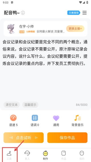 打开配音类别,点击底部的工具选项,进入工具功能页面。
