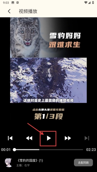 在模板推荐界面,找到并点击“雪豹的国度”模板条目,即可进入对应的视频播放页面。