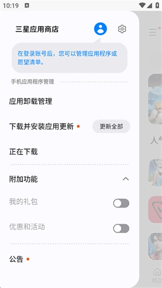 支持免登录使用、更新等基础功能,登录三星账号后可解锁多设备应用同步功能,以适配不同用户的使用场景。