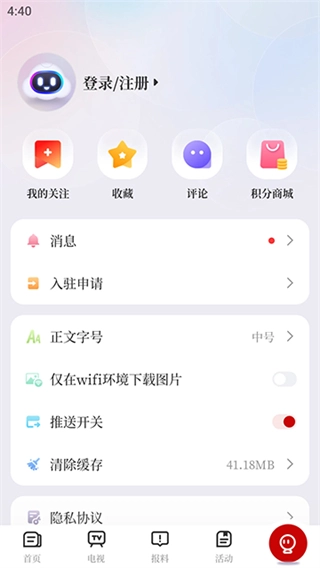 在我的页面,点击请登录区域,进入注册页面。