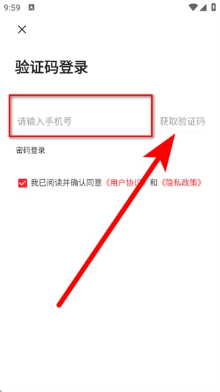 在注册页面,输入手机号后,点击获取验证码。