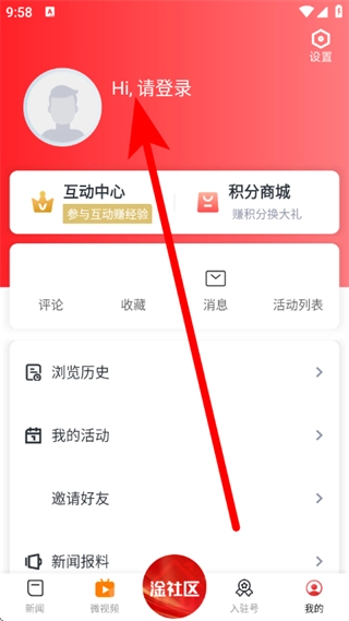 进入首页后,点击底部我的,进入我的页面。