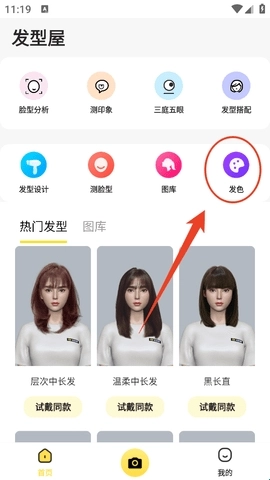 1、进入软件之后,在首页找到“发型设计”功能,点击进入。