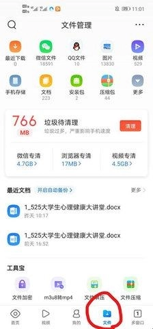 1、打开手机QQ浏览器,点击右下方的文件。