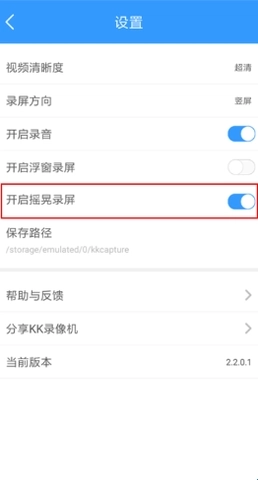 方法三:KK设置,开启摇晃录屏,然后摇晃手机开始录制,再次摇晃手机结束录制。