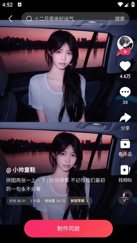 3、最后点击下方的“制作同款”,按照步骤就能轻松制作同款视频了,如果不会操作的话可以看看上面的操作教程,里面有视频教学。