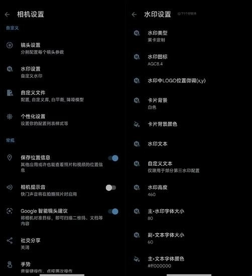 4、需要相机水印的话,点击右上角的 WMK 按钮开启,然后可以进入设置自定义水印的类型、样式设置等等。