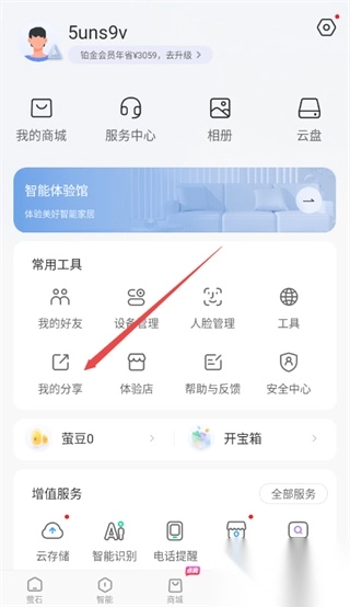 第四步,用户需回到“萤石”界面,点击添加设备后就能进行分享。