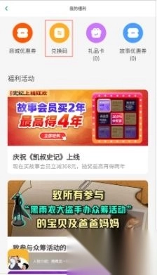 请前往我的福利专区,找到并点击“兑换码”功能入口。