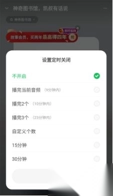 当你进入故事的播放界面后,找到带有钟表图案的按钮并点击,这样就能设置定时结束的模式了。