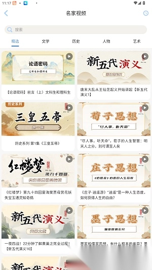 4. 免费在线观看各类名家讲历史,栏目包括文学、历史、人物、艺术等。