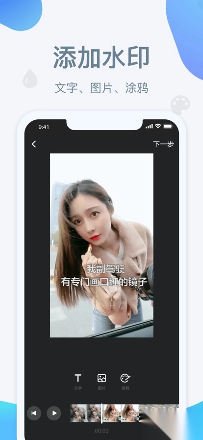 添加文字水印(可自定义字体)、图片水印及自由涂鸦