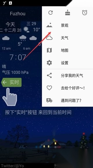 3、轻点界面右上角的“设置”选项,而后挑选“景观”。