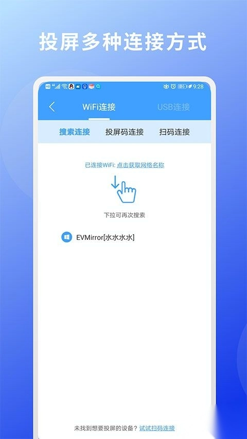 1、在本站下载并安装EV投屏,打开软件主页就能选择投屏连接方式