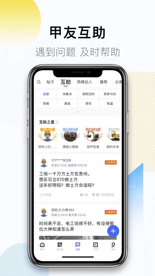 这是一个面向工程机械从业者的专业综合服务平台。平台系统会推送丰富的行业资讯,方便用户浏览和深入了解行业动态;用户也能在平台上发布个人动态,分享自己掌握的资讯,让更多人看到。
