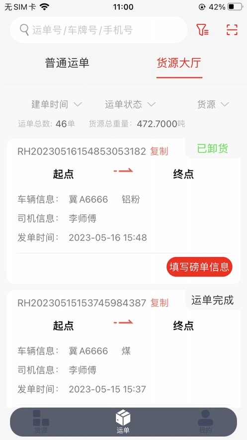 5, 多维度筛选货源订单:支持依据建单时间、运单状态以及货源等多个维度来筛选货源订单