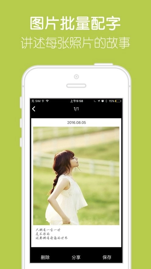给照片添加文字无需手动输入,用语音就能轻松完成配字。
