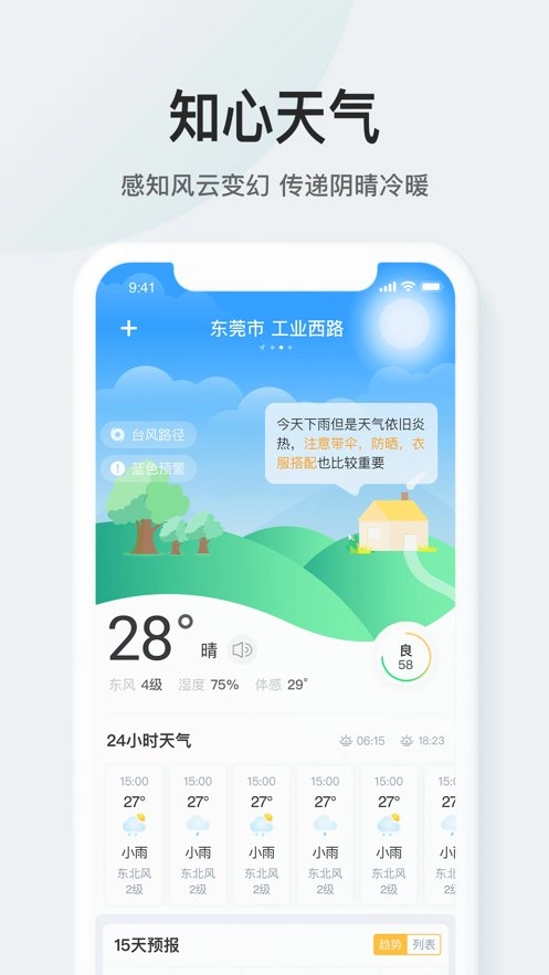 【15日天气预报】提供简约的15天天气、风向、温度及空气质量预报。