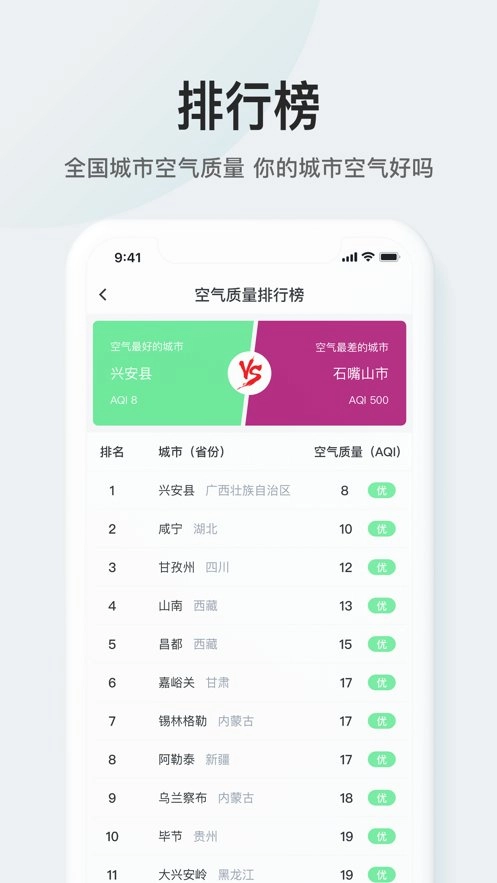 【空气质量排行榜】全国各城市空气质量排名,助您提前规划美好的出行目的地。