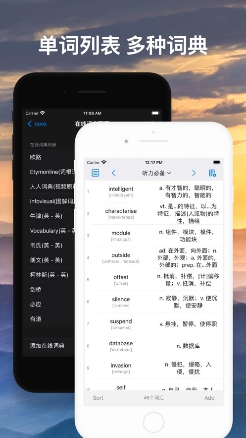 * 「词典查询」:涵盖英汉、英英词典及在线词典,且支持用户自行添加在线词典;