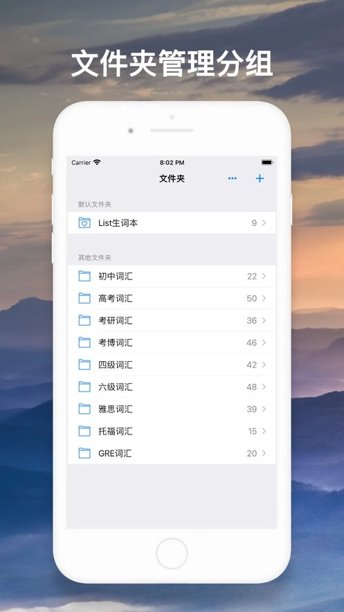 「文件夹管理」:在不同的文件夹当中,存在多个组,而每个组里面都包含着多个单词。