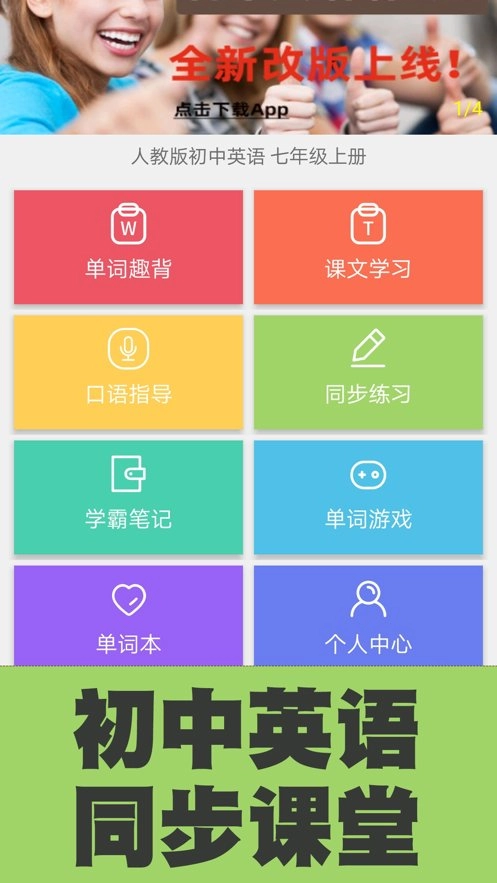 ——同步初中英语全国各套教材,通过图解趣学、外教视频,单词带读,游戏过关,趣味听写,交互练习等多维度记忆方式,帮助广大中学生轻松快乐高效学课本,背单词!