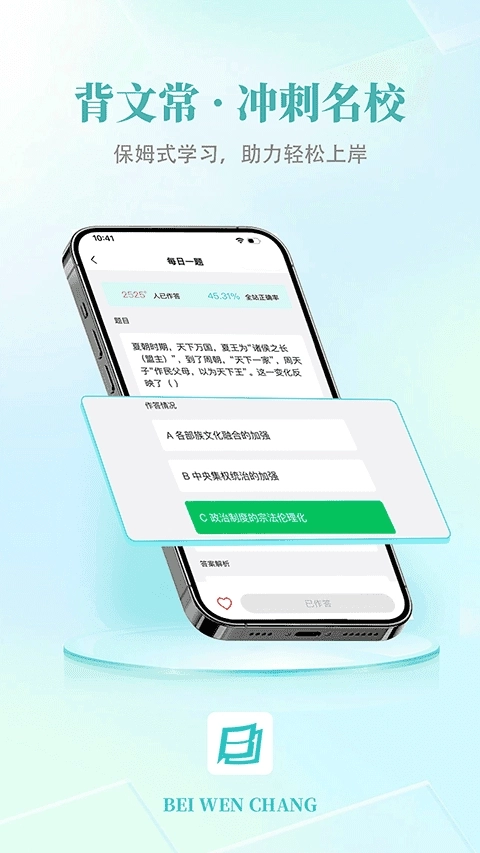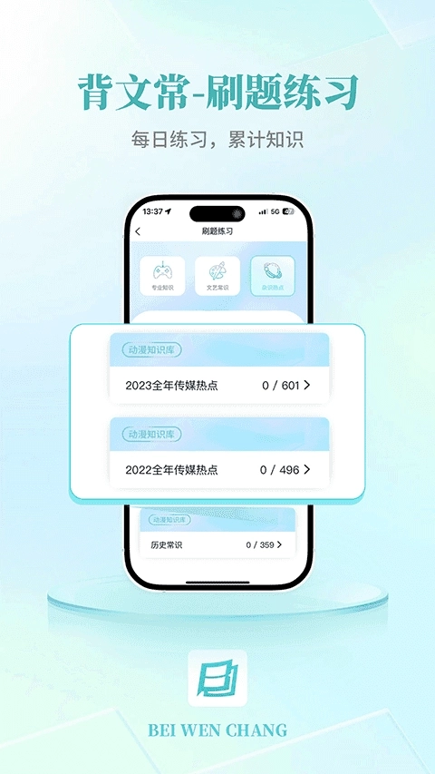 背文常免费版是一款专为学习刷题打造的软件,它能自动汇总考生答错的题目生成错题本,便于考生开展针对性复习。该软件涵盖了艺考所需的各类知识点与题目类型,助力考生实现全面复习。考生还可依据自身学习需求,定制专属的学习计划和内容,从而帮助艺术类考生高效备考,取得理想成绩。