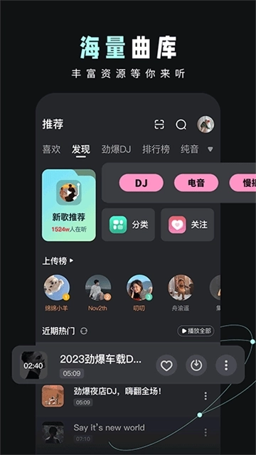中文DJ舞曲、英文DJ舞曲、3D环绕舞曲,日韩舞曲、车载、夜店、苏荷、喊麦、电音DJ、节奏、Remix、网络DJ、网络红歌,只有想不到,没有找不到。