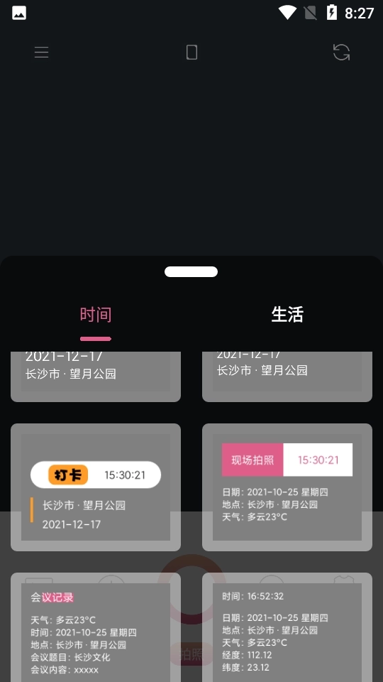 水印模板库在不断扩充,目前已覆盖时间地点水印、实时天气水印、精确经纬水印、萌趣卡通水印、防疫报备水印、春节贺岁水印等各类资源。