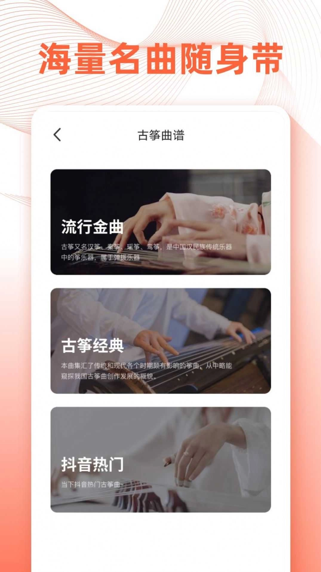 特邀资深古筝教师亲自出镜教学,从单音练习逐步过渡到双手配合,从节奏的精准把控到演奏中的情感传递,全程细致拆解每个关键动作要领,助力用户养成规范的弹奏习惯。