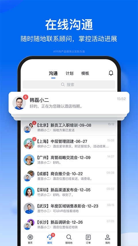 每位用户都将匹配专属的会议顾问,从需求梳理、档期核查、方案比选到最终签约,全程提供一对一的跟进服务。