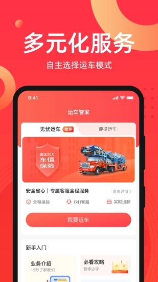 运车管家发车版是一款聚焦商品车运输场景的整车物流服务平台,服务对象涵盖汽车电商、4S店及二级经销商、物流承运企业与个体司机等各类用户。借助移动互联网技术,平台贯通“发布—报价—承运—在途—交付—结算”全流程,打造高效、透明且可追溯的O2O闭环服务体系。发车方可随时一键下单,快速匹配合适运力,实时掌握运输进度;承运方则能灵活接单、公平参与竞价、及时完成回款,切实达成“发车轻松、运车安心、结算准时”的目标。