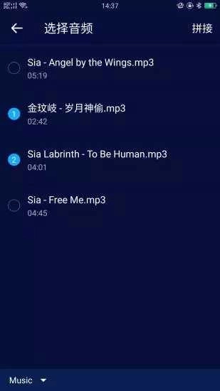 音频拼接:支持两个或多个音乐文件合并成一首歌曲。