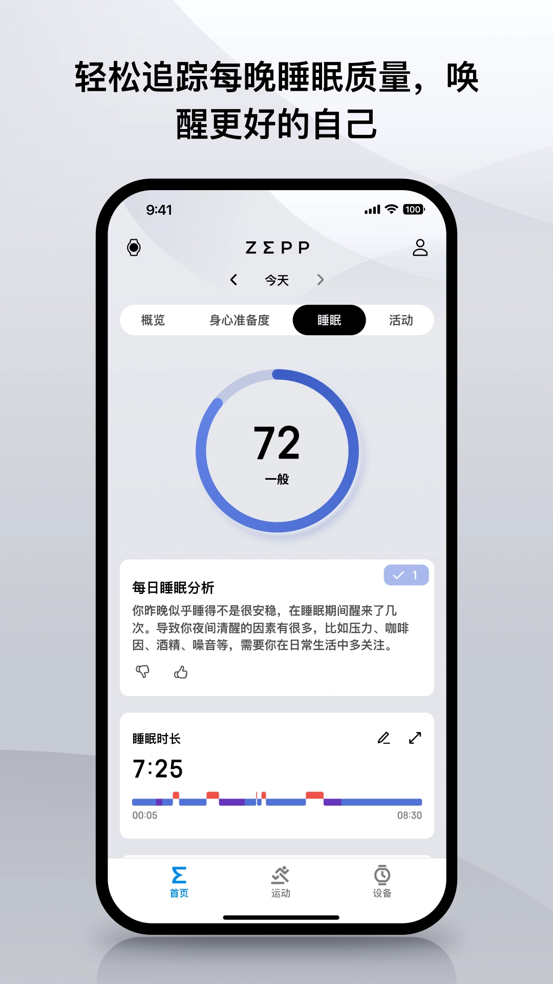 通过连接日常生活的全场景,凭借领先的数据分析能力与AI算法体系,Zepp能够成为每个人的随身健康管家:助力用户轻松掌握身体变化,记录日常运动状态,还能通过对各项生理指征的全面、实时AI分析,及时发出健康预警并提供专业指导,让用户实现对自身健康的深度掌控。