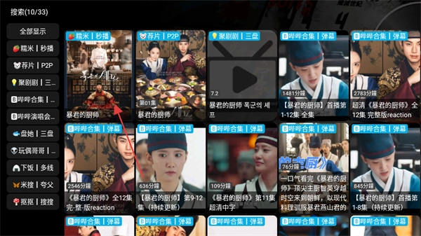 在电视筛选界面,找到《暴君的厨师》,点击进入对应的搜索结果页面。