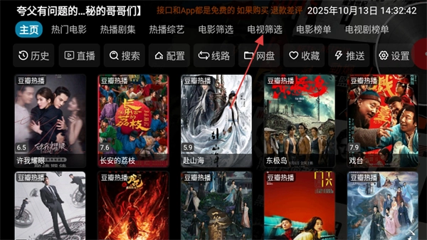整个观影过程不存在任何需要付费的步骤,不需要开通会员或者进行充值操作,所有的影视资源在添加对应的接口之后都能够免费观看,从根本上减少了观影的成本,让用户可以没有压力地享受大屏影视内容,符合家庭免费观影的需求。