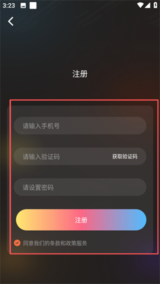 4、在注册页面填写相关信息并勾选协议后,点击注册按钮完成账号注册。