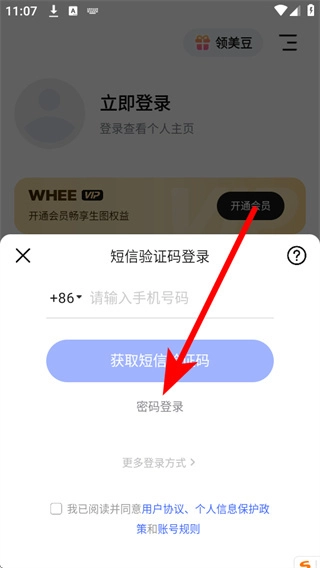 当弹出登录界面后,选择密码登录这一选项,即可切换至手机密码登录模式。