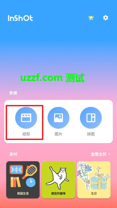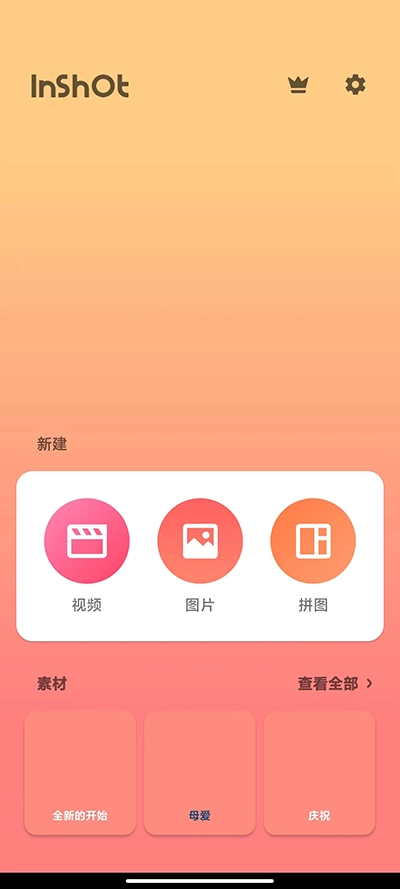 首先,我们需要在手机里打开【inshot】应用,接着可以导入照片或视频素材,此外还能进行拼图创作,也能够将多个视频合并成一个完整的视频。