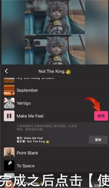 挑选一首你想导入的音乐,等操作完成后,点击它后方的“使用”按钮就可以了。