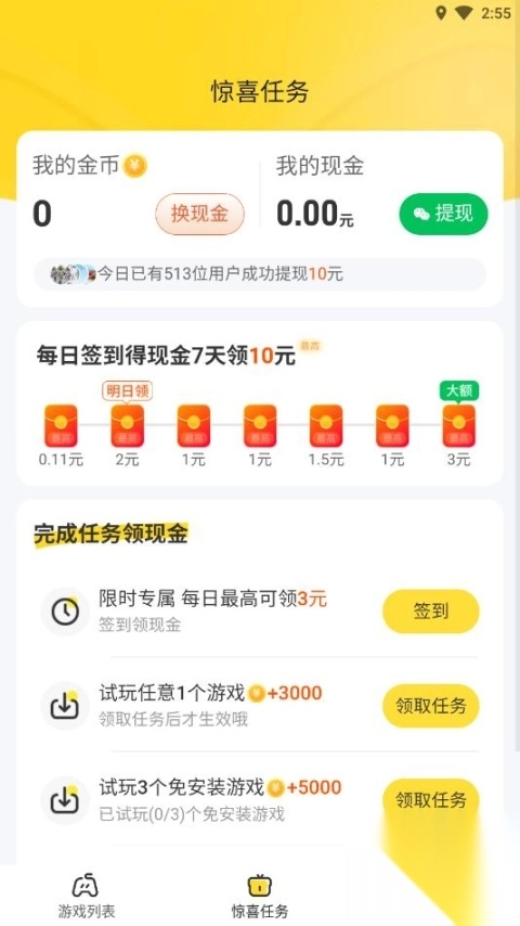 你还能找到惊喜任务入口,在那里通过每日打卡和完成指定任务,就能获取现金奖励。