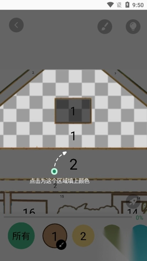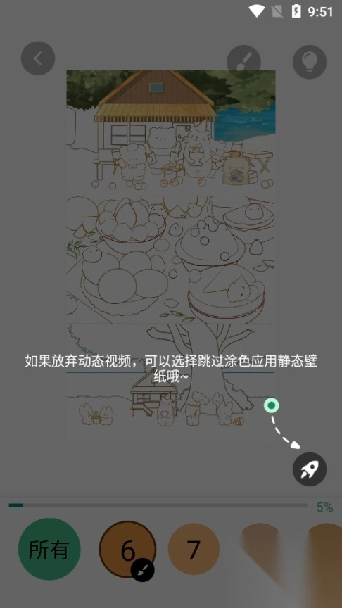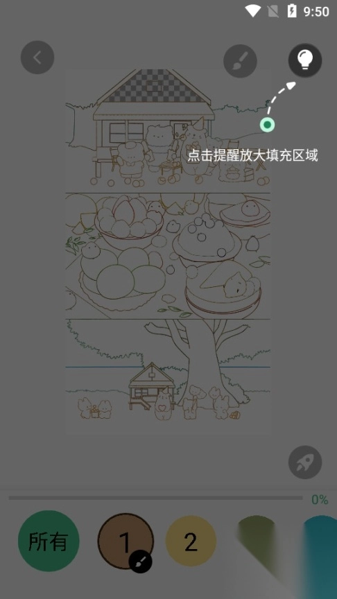 点击下方的色块即可完成调色操作,点击上方的画笔则能实现自动涂色功能。